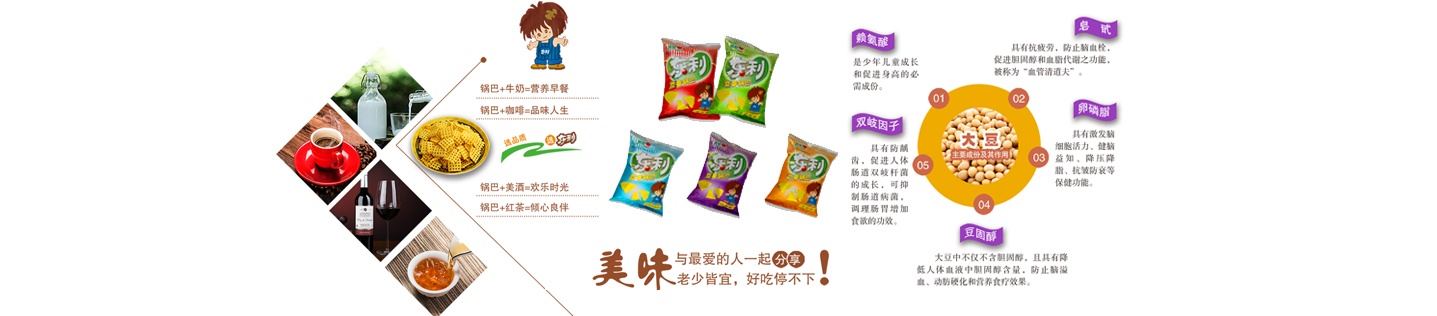 山西運(yùn)城市鑫諾食品有限公司是以生產(chǎn)休閑小食品為主的企業(yè),生產(chǎn)基地位于關(guān)公故里山西運(yùn)城(鹽湖工業(yè)科技園),主要生產(chǎn)并銷(xiāo)售“東利”牌豆香鍋巴系列休閑食品。